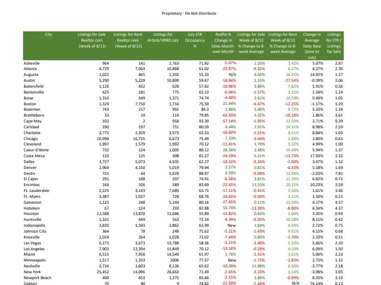 Top Cities for Short-Term Listings July
