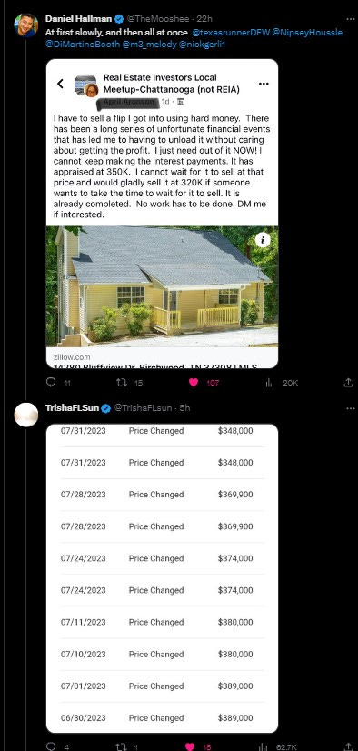 And, this investor class travels in packs and are “in it together,” meaning that they all understand what happens when someone sells at a distressed price. Take this tweet from today which features a desperate holder:
